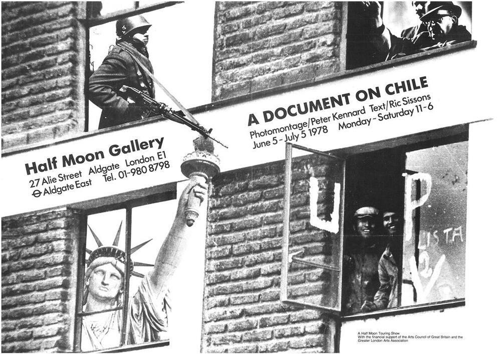 Scope and ContentPoster with a photomontage by Peter Kennard and the text: A document on Chile. Photomontage - Peter Kennard. Text - Ric Sissons. June 5-July5 1978. Half Moon Gallery, London