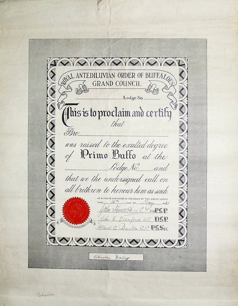 TitleRoyal Antediluvian Order of Buffaloes certificate