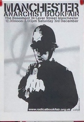Scope and ContentPoster with an image of a police office making an obscene gesture and the text: Manchester Anarchist Bookfair, The Basement, 24 Lever Street, Manchester, 12noon-5.00pm Saturday 3rd December