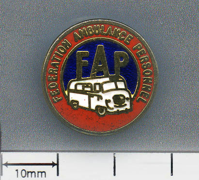 Scope and ContentBlue, Red, White, Gold. Text: FAP Federation Ambulance Personnel. Illustrated with an ambulance