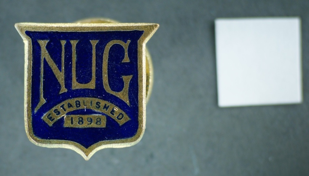 Scope and ContentEnamel badge with the text: NUG. Established 1898