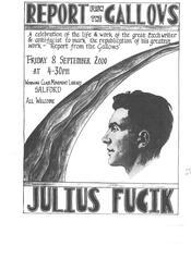 Scope and ContentPoster with an image of Julius Fucik and the text: Report from the gallows. A celebration of the life and work of the great Czech writer and anti-fascist to mark the republication of his greatest work - Report from the gallows. Friday 8 September 2000 at 4.30pm. Working Class Movement Library, Salford. All welcome. Julius Fucik