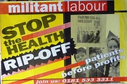 Scope and ContentPoster with various images and the text: Militant Labour. Stop the health rip-off. Patients before profits