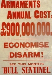 Scope and ContentHull Sentinel headline hoarding with the text: Armaments annual cost: £900,000,000. economise and disarm!. See this month's Hull Sentinel [Jul 1932?]