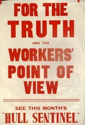Scope and ContentHull Sentinel headline hoarding with the text: For the truth and the workers' point of view. See this month's Hull Sentinel