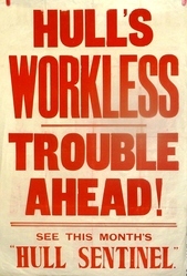 Scope and ContentHull Sentinel headline hoarding with the text: Hull's workless - trouble ahead! See this month's Hull Sentinel [Jan 1932?]