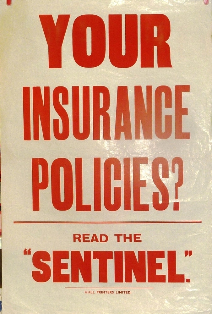 Scope and ContentHull Sentinel headline hoarding with the text: Your insurance policies? Read the Sentinel [May 1934?]