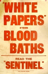 Scope and ContentHull Sentinel headline hoarding with the text: White Papers for blood baths. Read the Sentinel [Mar 1935?]