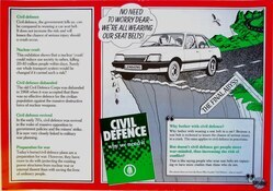 Scope and ContentExhibition board about civil defence showing an image of a car being driven over a cliff and giving information about civil defence