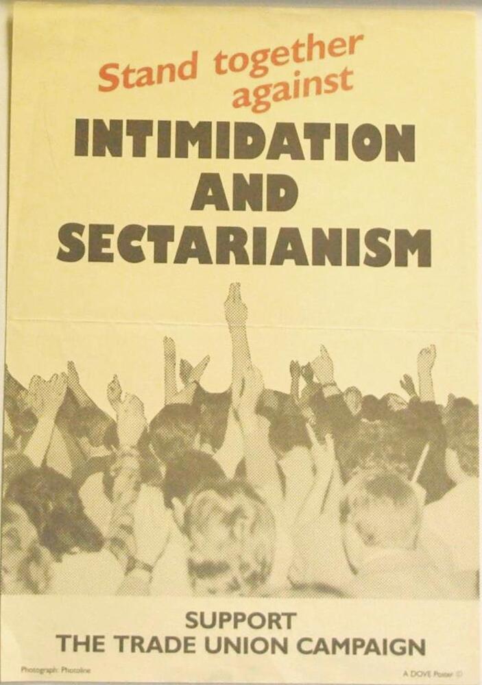 Scope and ContentPoster with an image of a trade union meeting and the text: Stand together against intimidation and sectarianism. Suppor the trade union campaign