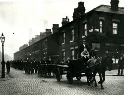 Scope and ContentBlack and white photograph of a procession of men going to collect the tool boxes as part of the wiredrawers' strike at Richard Johnson and Nephew