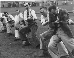 Scope and ContentBlack and white photograph of a tug of war team taken at the Centenary pageant and sports gala held at the Manchester Athletic Club, Fallowfield, Manchester