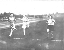 Scope and ContentBlack and white photograph of three women runners taken at the Centenary pageant and sports gala held at the Manchester Athletic Club, Fallowfield, Manchester