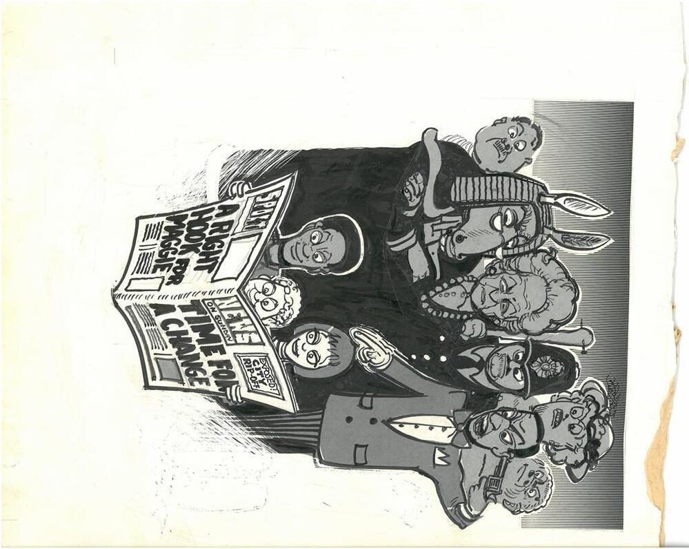 Scope and ContentCartoon showing three people reading the News on Sunday. Various establishment figures are looking over their shoulders