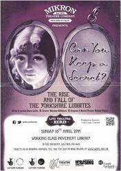 Scope and ContentPoster with an image of a woman in a locket and the text: Mikron Theatre Company presents Can you keep a secret? The rise and fall of the Yorkshire Luddites. To be performed on 15 Apr [no year] at the Working Class Movement Library