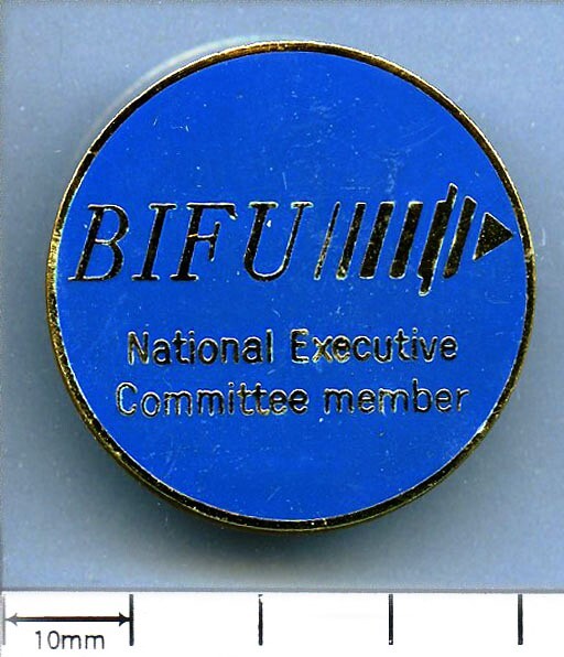 Scope and ContentEnamel badge with the text: BIFU National Executive Committee member.