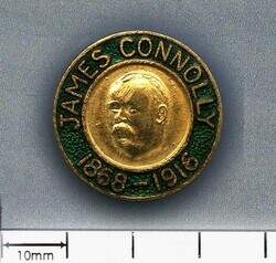 Scope and ContentEnamel badge with an image of James Connolly and the text: James Connolly, 1868-1916.