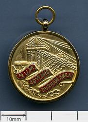 Scope and ContentEnamel and gilt fob with an image of a pit head and laurel leaves and the text: NUM. 40 years. Durham Area