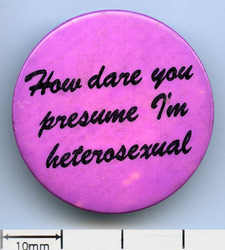 Scope and ContentTin badge with the text: How dare you presume I'm heterosexual