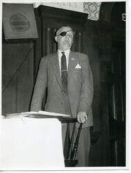 Scope and ContentBlack and white photograph of a speaker at a National League of the Blind and Disabled meeting