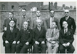 Scope and ContentBlack and white photograph of a group of ten men taken outdoors