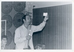 Scope and ContentBlack and white photograph of Aubrey Garson speaking at a Communist Party meeting