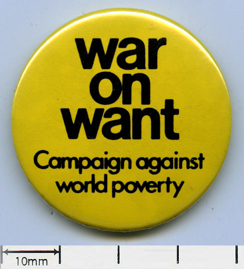 Scope and ContentTin badge with the text: War on Want. Campaign against world poverty