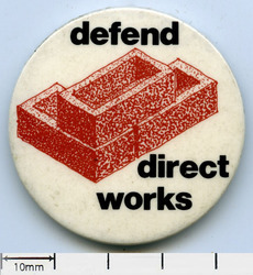 Scope and ContentTin badge with an image of a pile of bricks and the text: Defend direct works
