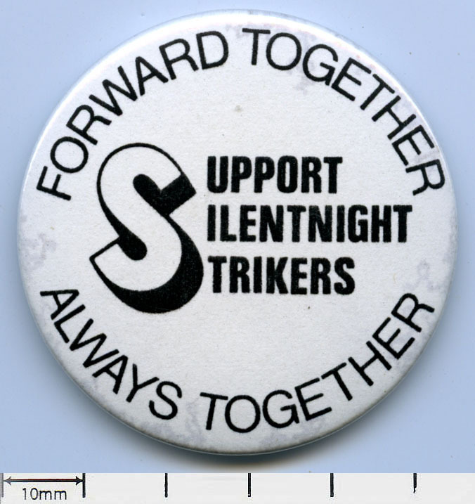 Scope and ContentTin badge with the text: Support Silentnight strikers. Forward together. Always together.