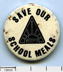 Scope and ContentTin badge with the NUPE logo and the text: Save our school meals