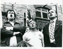 Scope and ContentBlack and white photograph of Martin Webster, Derrick Day and John Kingsley Read at National Front demonstration, Hackney, London.