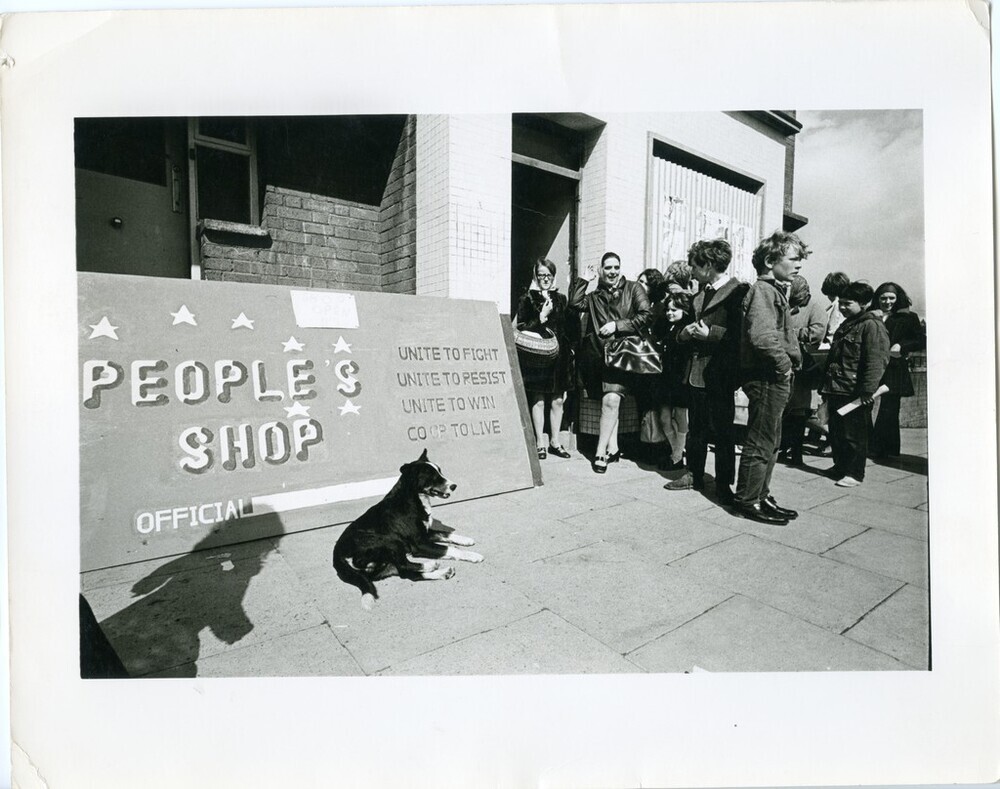 Scope and ContentBlack and white photograph of a co-operative People's Shop set up in Creggan, Derry by the Official IRA to be run by the local community. Caption on the back: The official IRA's activities includes the setting up of co-operative shops which are intended to be run by the local community eventually. This is one in the Creggan