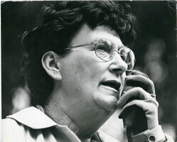 Scope and ContentBlack and white photograph of Joan Maynard MP speaking at 'Free Speech on Ireland' rally and march.