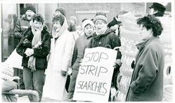 Scope and ContentBlack and white photograph of a group of women picketing Brixton Prison to protest against the strip searching of two young Irish women being held on remand in connection with the 1985 seaside bombing campaign.