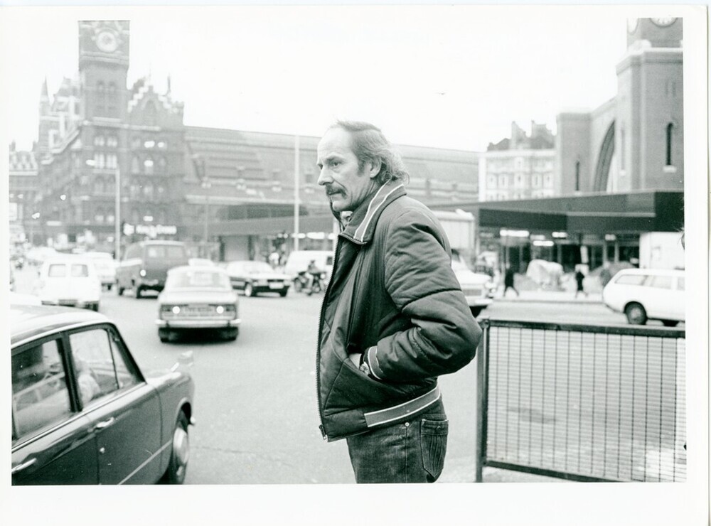 Scope and ContentBlack and white photograph of Wally Heaton, self-described 'revolutionary socialist', petty criminal, Northern Ireland civil rights supporter. Ran Tottenham Claimants Union with Rose Dugdale. Photographed outside St Pancras/Kings Cross stations, London.