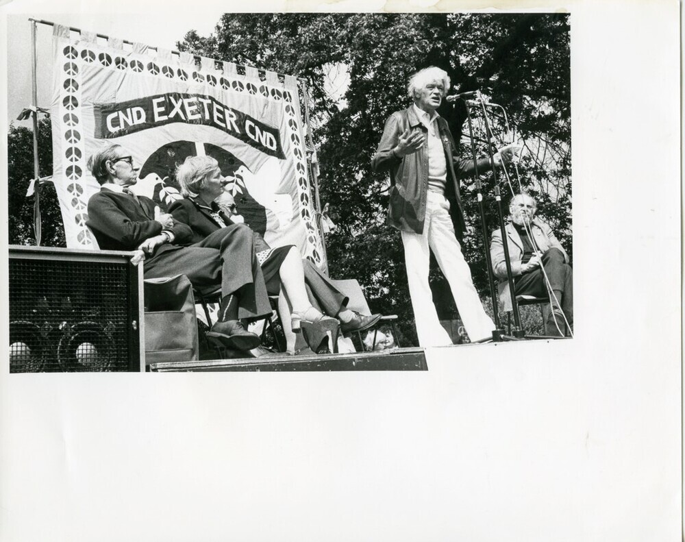Scope and ContentBlack and white photograph of EP Thompson speaking at an Exeter Campaign for Nuclear Disarmament rally