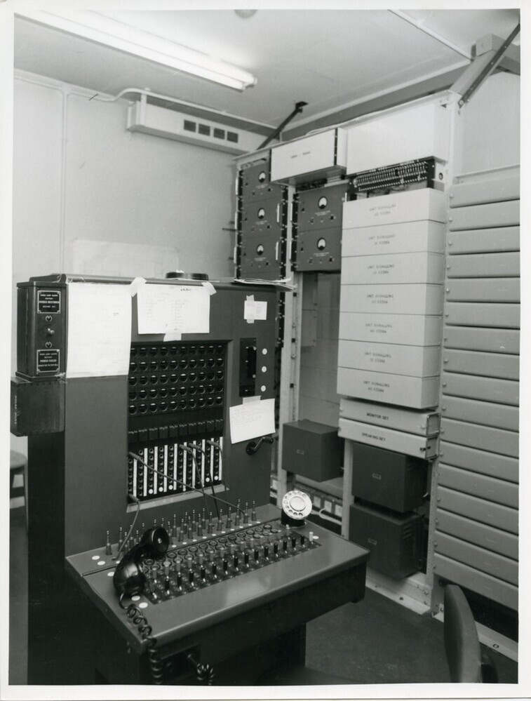 Scope and ContentBlack and white photograph of the Greater London Council's telephone switchboard for use in emergency if normal communications remain intact after nuclear attack