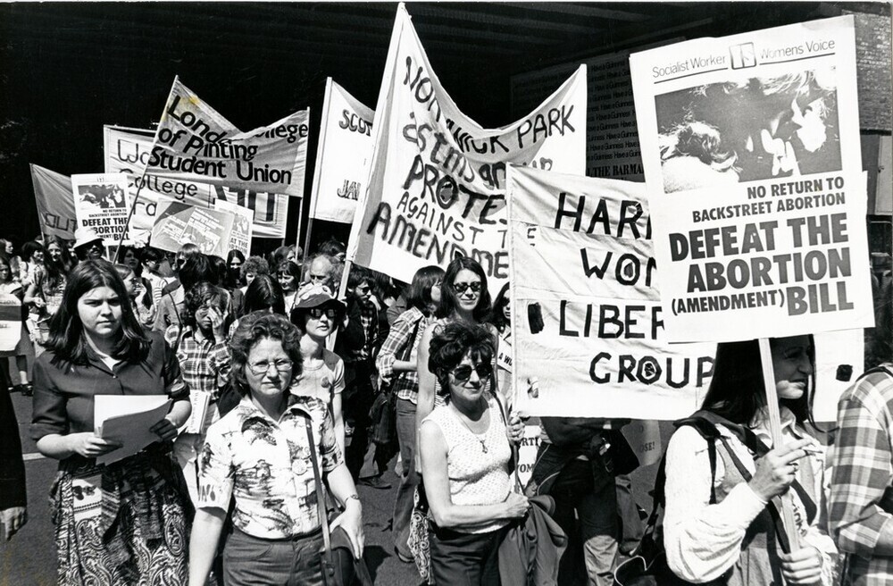 Scope and ContentBlack and white photograph of protesters at a National Abortion Campaign demonstration in London against James White's amendment to the Abortion Act of 1967