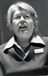 Scope and ContentBlack and white photograph of Rita Stephen, trade unionist, speaking at a conference