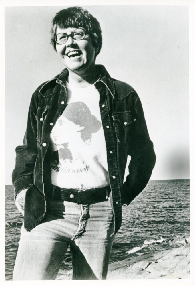 Scope and ContentBlack and white photograph of Mary Daly, American feminist philosopher and theologian; author of 'Gyn/ecology: the metaethics of radical feminism'