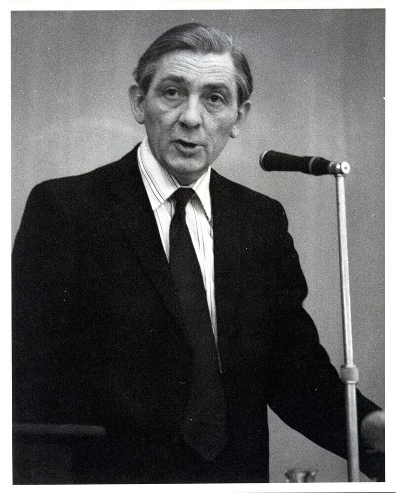Scope and ContentBlack and white photograph of Len Murray speaking at the Trades Union Congress conference on sex discrimination, Congress House, Great Russell Street, London