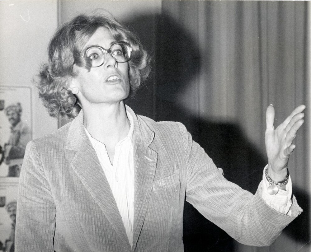 Scope and ContentBlack and white photograph of Vanessa Redgrave, British actress, making a speech