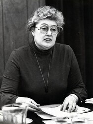 Scope and ContentBlack and white photograph of Rita Stephen, trade unionist; campaigner for working women's rights and equal pay