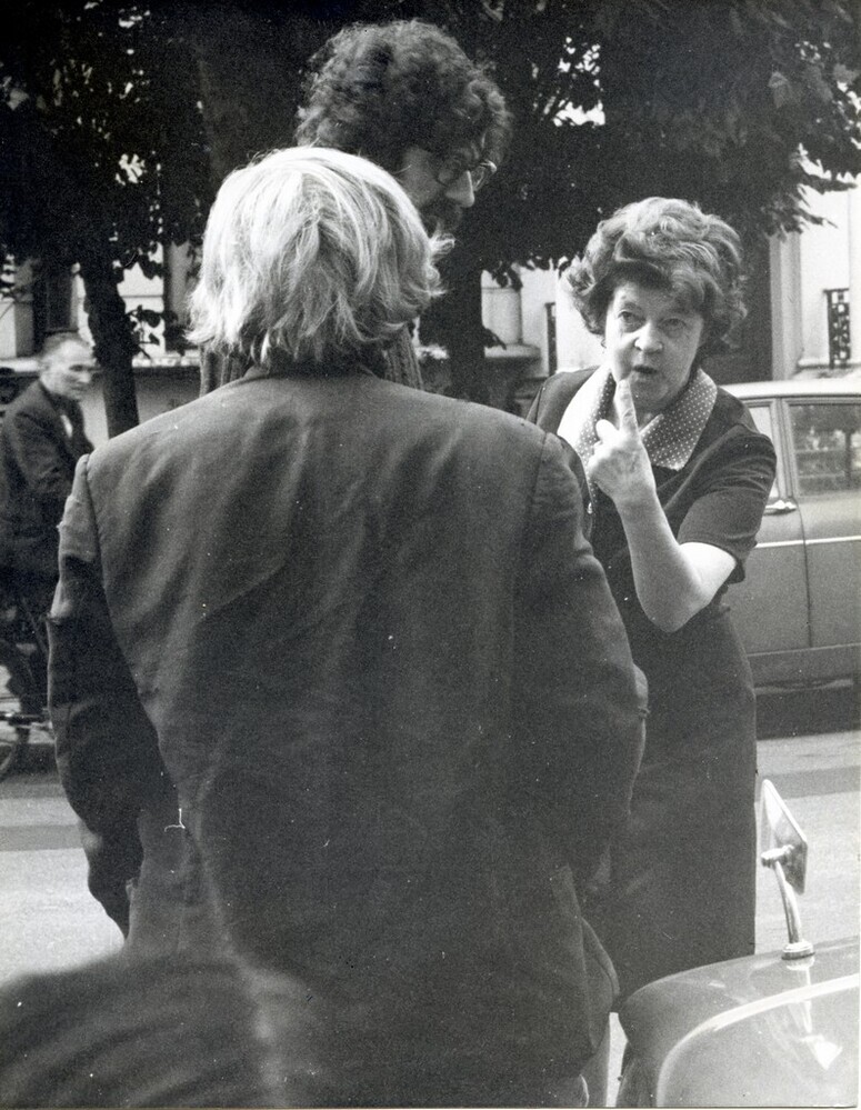 Scope and ContentBlack and white photograph of a local resident arguing with squatters (including Piers Corbyn) after the eviction in Sutherland Avenue, London W9.