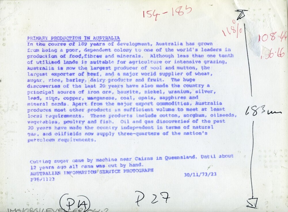 TitlePhotograph - Cutting sugar cane, Australia, 1973