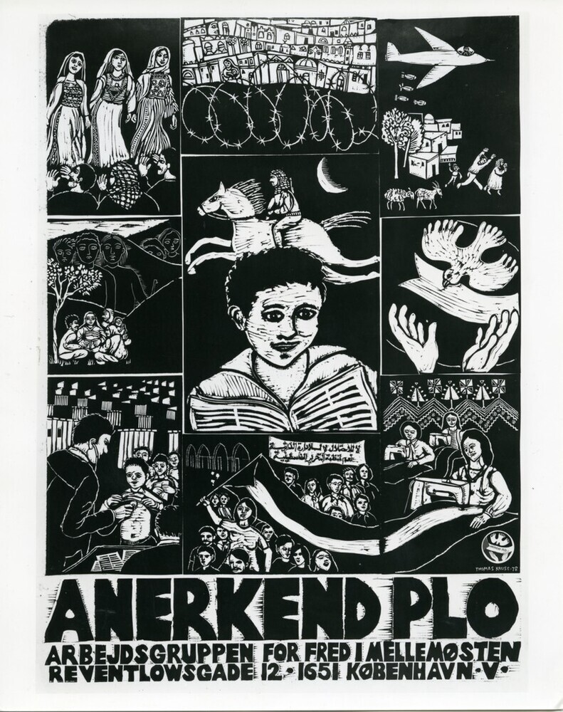Scope and ContentBlack and white photograph of the poster by Thomas Kruse, member of Rode Mor arts collective, Copenhagen entitled Anerkend PLO (Acknowledge PLO)