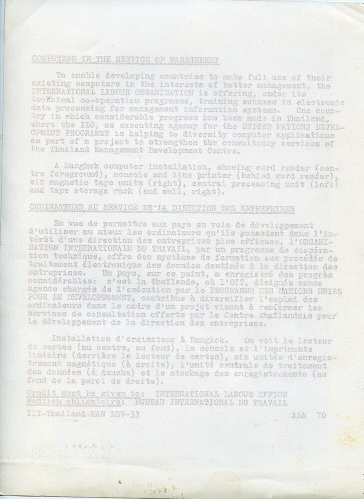 Scope and ContentBlack and white photograph of a computer installation by International Labour Organisation in Bangkok