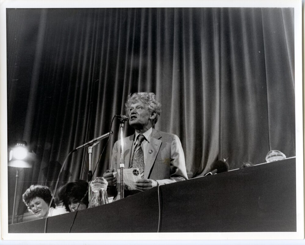 Scope and ContentBlack and white photograph of EP Thompson speaking at a rally/meeting