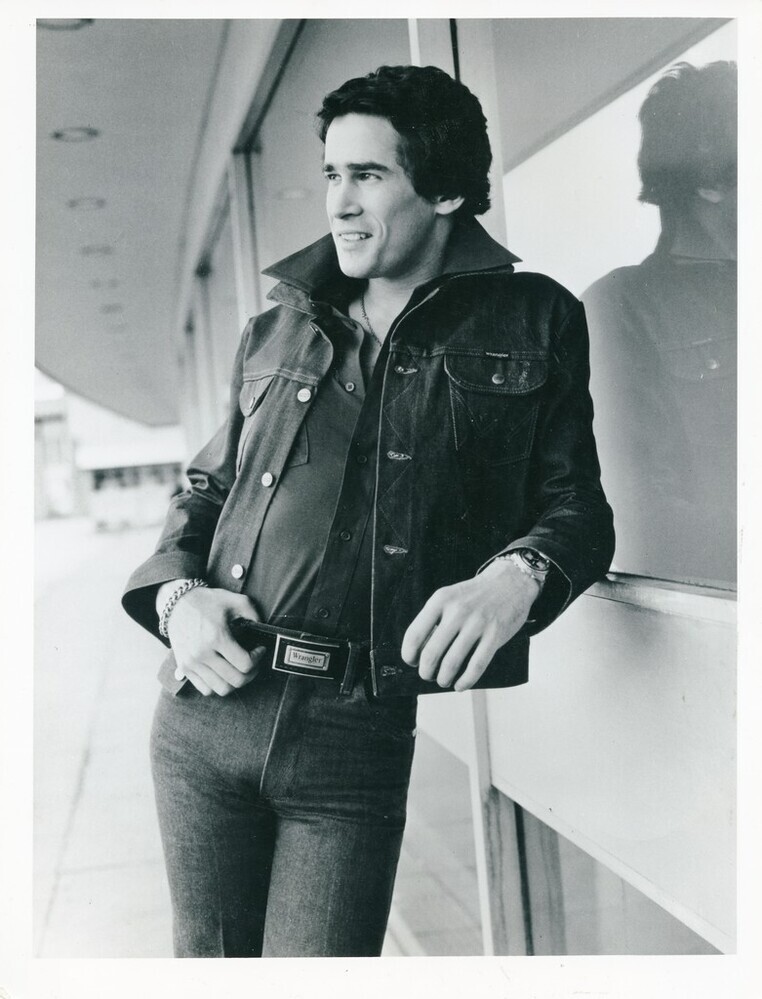 Scope and ContentBlack and white photograph of a man modelling Wrangler Jeans