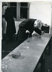 Scope and ContentBlack and white photograph of an elderly man bending over a table